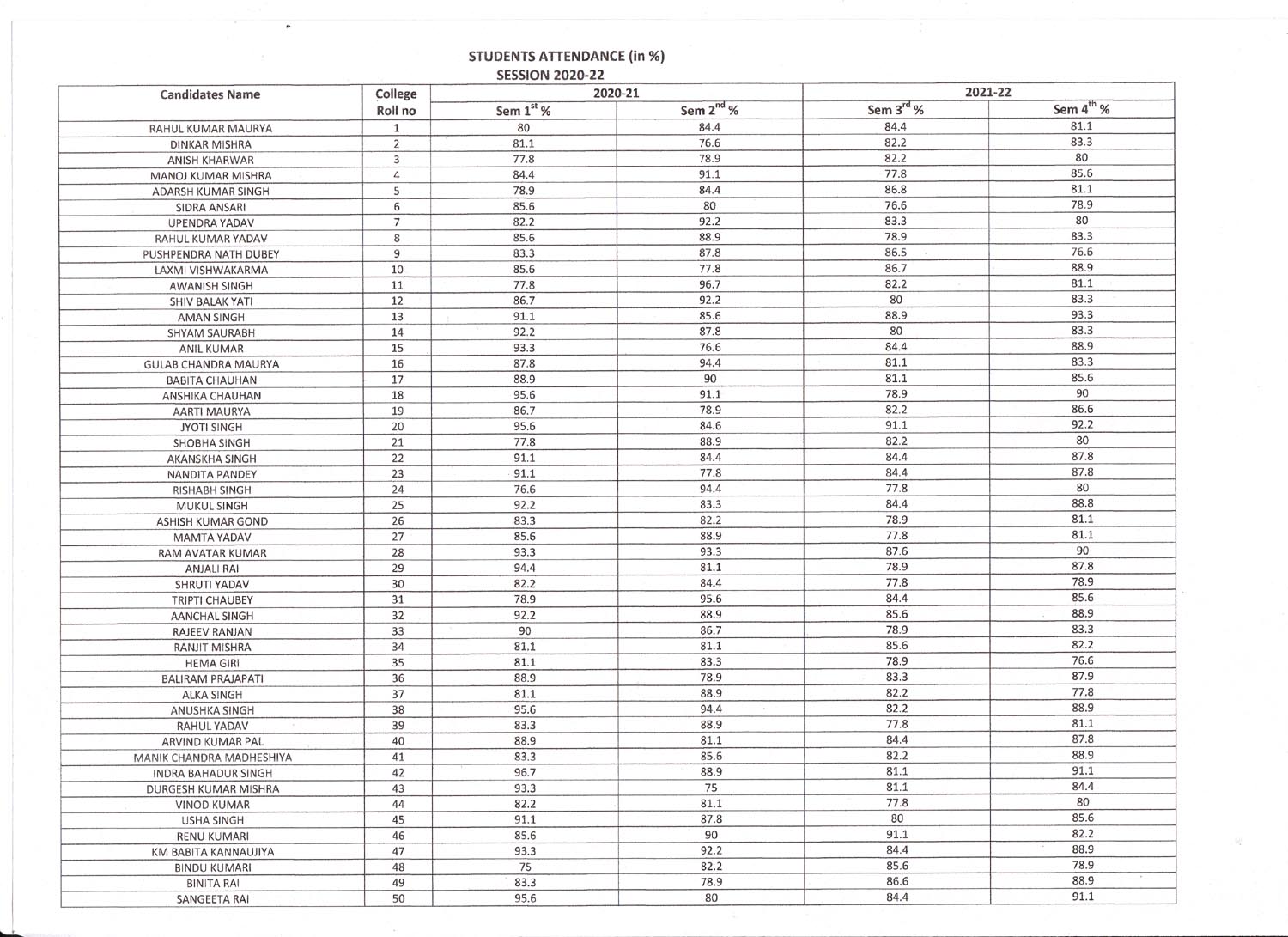 Students Attendance Record Session 2020-2022