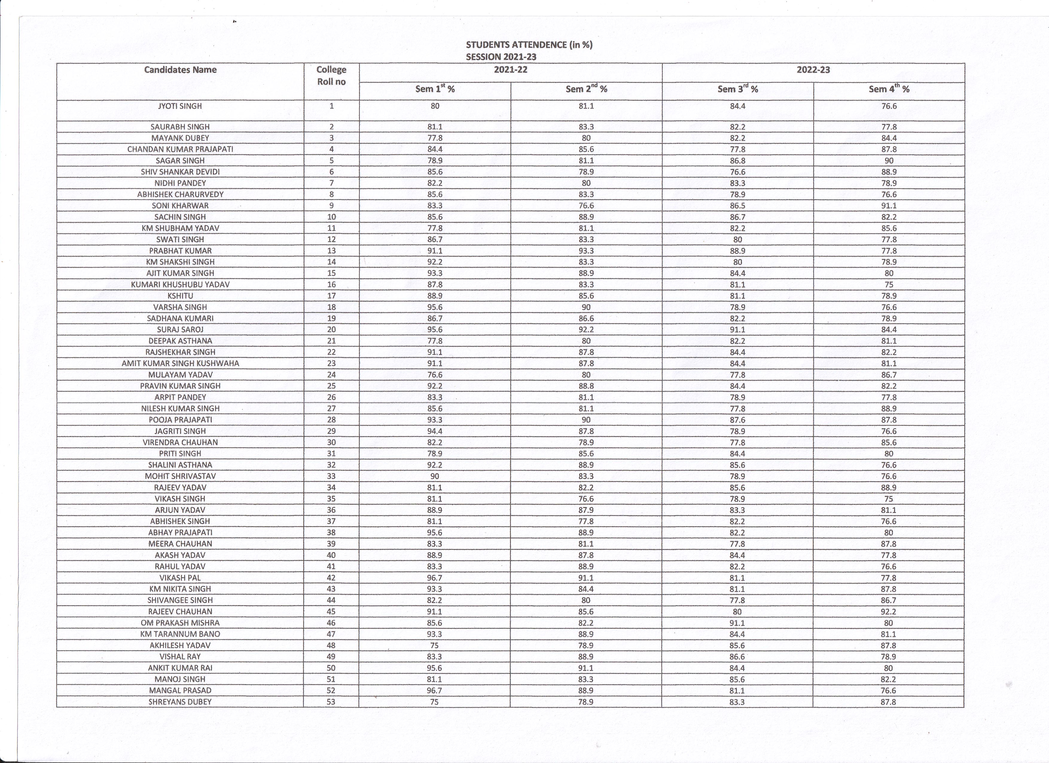 Students Attendance Record Session 2021-2023
