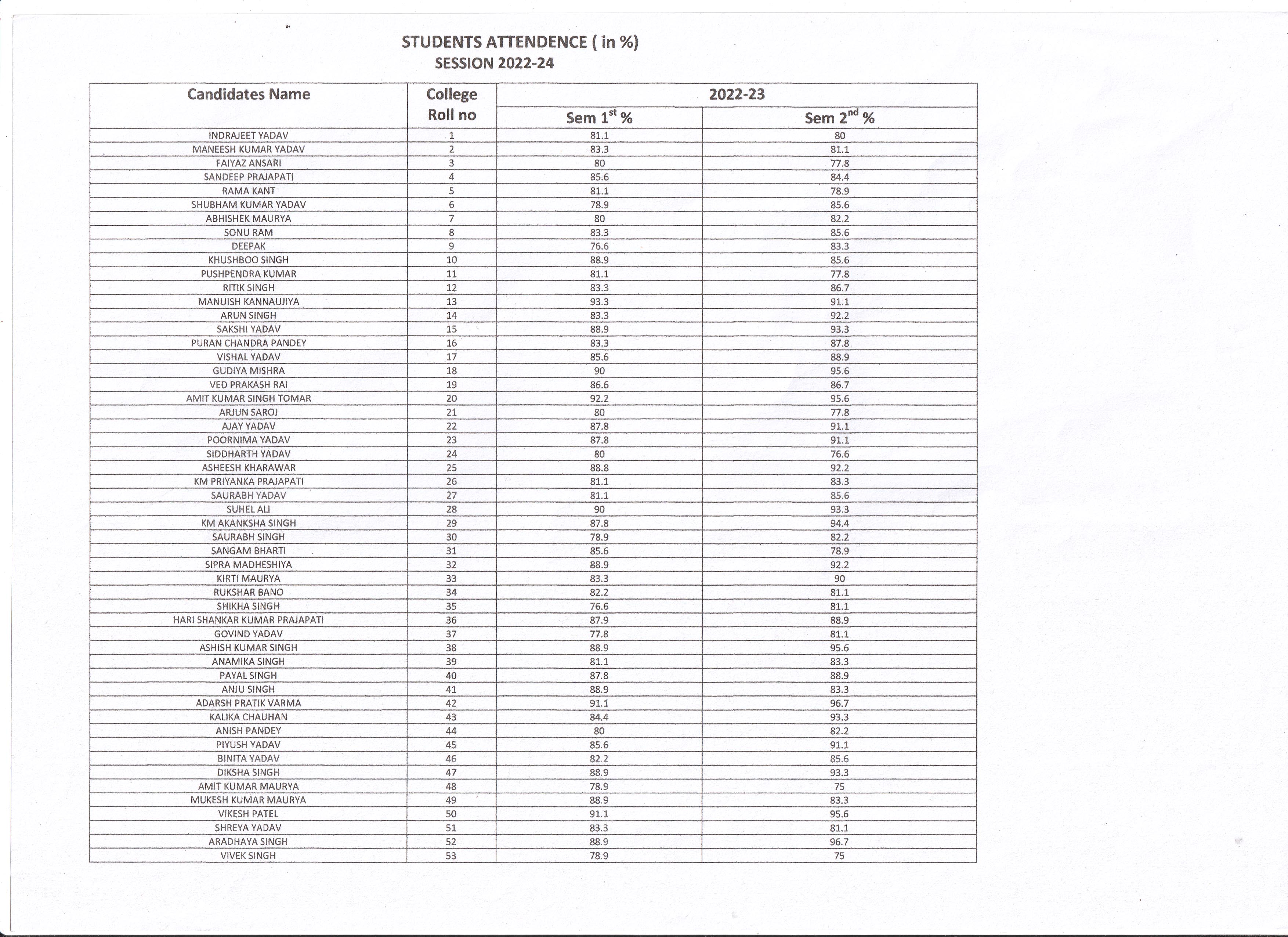 Students Attendance Record Session 2022-2024